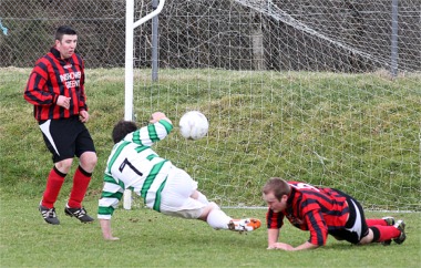 Fletcher’s dipping effort over the bar. Illies winger Eamon Hegarty embarked on a menacing run on the left before a perfectly timed tackle from defender Brian King put Cockhill back on the front foot. With Fletcher and Kevin McDaid working hard in midfield, Cockhill, with the wind at their backs, began to dominate. An Aaron McLaughlin corner was headed clear from under his own crossbar by Illies defender Dominic Doherty before another |