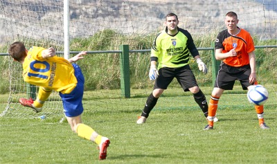 and easily slotted the ball into the back of the net. Determined not to rest, Carrowmena held the pressure on and Gillen’s long ball to the sub Shaun McGrenaghan resulted in the young striker stumbling at the Aileach defence. With penalty claims being shouted from the sidelines, the referee thought different and booked McGrenaghan for diving. With frustrations running high on both sides, words were had between the Aileach’s Jimmy Gallagher and Carrowmena’s assistant manager John McLaughlin over a throw-in, further instilling the importance of this penultimate match in the Premier League. Try as they might, Carrowmena were unable to hold the striking force of Brian Bell’s men, whose composure and skill up front was only contained by the heroic goalkeeping of Michael Noone, without whom Carrowmena would have suffered much more greatly. Man of the match goes to Aileach’s number 9 Anthony Doherty. The centre forward was involved in most of the away side’s chances by both setting up the Doherty and Collett as well as scoring an impressive penalty to get Aileach of the mark. Carrowmena: Michael Noone, Ruairi Dougal, Paul Hyndman, John McGeady, Ryan Killen, James Gillen, Raymond Campbell, Paul McGowan, Gerard Gill, Dermott Harkin, Paul Duffy. Subs: Shaun McGrenaghan, Patrick McClenaghan and Killian Dougal. Aileach FC: Gerard Crossan, James Gillespie, Stephen O’Donnell, Damien Barr, Neil McElhinney, Ruairi Boyle, Dermot Doherty, Jimmy Gallagher, Anthony Doherty, Gary Collett, Decky O’Donnell. Subs: Dermot McGlynn, Ruairi Bradley, Stephen Doherty, Gavin Doherty, and Cathal McElhinney. For full coverage of all your weekend sport, read the Inishowen Independent. |