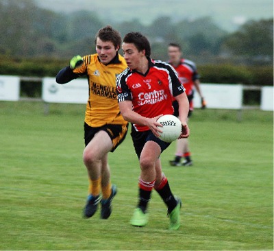 minute. Little did they know that they would be held scoreless for the next 26 minutes as Urris grabbed control of the game. James Cook was outstanding at full back, while wing forward Conor Bradley covered every blade of grass coming back to help in defence and surging forward to lead the attack. Dean Kelly was magnificent in the air, while his midfield partner Jamie Coyle was a perfect foil to the big man. Kelly opened Urris’ scoring with an eighth minute free, and they claimed the first of their three goals in the 19th minute. Malin keeper Patrick McGrenaghan and one of his defenders combined to block a Darren Coyle shot, but Aaron Friel poked the loose ball into the net as Urris took a lead they would never relinquish. |