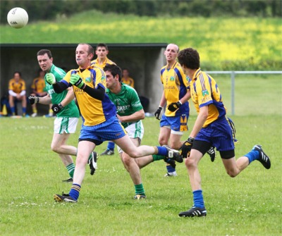 ball and pointing on the turn. Boyle turned provider on 20 minutes as Ciaran Dowds extended Burt’s lead. There were first half goal chances too: Paul McHugh dragged one wide for Burt before Patrick McCafferty sliced a Harden cut back wide for the visitors. Dowds and McHugh combined on the right wing with the latter creating another goal chance on the stroke of half time, but with a goal at his mercy Enda McDermott volleyed the ball sky high over the bar and the home side took a 0-4 to 0-2 lead into the half time break. |