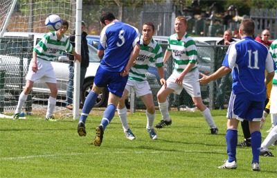 post. Fifteen year old Darach O’Connor, making his debut for Buncrana’s senior team, had a long range effort blocked by his namesake William O’Connor on 20 minutes, and again went close with a dipping shot on 40 minutes. Decky Fullerton too went close when Matthew Cutliffe played a superb pass into this path but he lofted his shot just over the crossbar. With Buncrana’s Mattie Henry running the midfield, Cockhill were under the cosh and had only wayward attempts from Liam O’Donnell and a Mark Moran cross-cum-shot that flashed across goal to show for their efforts. |