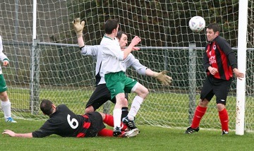 the right. Redcastle should have levelled minutes later after James Curran found himself in behind the home defence in clear space; the winger confronted Clonmany keeper Peter Devlin before laying the ball into the path of Brendan Murphy who was also unlucky to see his effort smash against the post as a posse of defenders struggled to get back onto the line. United midfielder Gavin McCauley then stung the palms of Devlin with a fierce drive before wing-back Mark McLaughlin had Clonmany on the attack once more. On the half hour mark Clonmany went two clear went Jamie Coyle gathered in McLaughlin’s long pass before racing clear of the Redcastle defence, rounding keeper McCole and slotting in from the tightest of angles. Minutes later McCole kept his team in the hunt, bravely diving at the feet of Coyle following Alan Friel’s cross. With the last action of the first-half McCole made another fine stop to deny Michael Devlin. The second period saw relegation-threatened Redcastle come more into the game with Colm McLaughlin seeing a shot deflected wide before Clonmany keeper Peter Devlin brilliantly gathered Gavin McCauley’s threatening cross. With Daniel McLaughlin and Darren Coyle coming into the fray for Clonmany, the home team fired three shots in anger soon after. Jason Devlin’s effort was deflected just over after good work by Michael Grant before another Devlin attempt whistled inches too high with Michael Devlin also off target from distance. Becoming more of a threat as the game progressed, Redcastle almost pulled a goal back but Colm McLaughlin headed Marty Byrne’s free-kick wide before wideman Paul McGowan set his sights too high from 25-yards. In a stirring finish, Redcastle thought they had salvaged a draw after Curran and Murphy fired home before McDaid rescued a win for Clonmany with an assured finish under intense pressure. This weekend Redcastle face a crucial Foyleside derby at Greencastle, where they must get at least a draw while Clonmany head to Glengad in confident mood. Clonmany Shamrocks: Peter Devlin, Mark McLaughlin, Michael Grant, Liam Hirrell, Philip Devlin, Raymond McDaid, Steve Harkin, Jamie Coyle, Michael Devlin, Alan Friel, Jason Devlin. Subs: Daniel McLaughlin, Darren Coyle, Brendan Devlin, Paul McLaughlin. Redcastle United: Michael McCole, Liam Davenport, Marty Byrne, Seamus Doherty, Cathal Faulkner, Gavin McCauley, James Curran, Colm McLaughlin, Brendan Murphy, Terry McColgan, Paul McGowan. Subs: Liam McLaughlin, Emmett McConway, Kevin Toner. Man of Match Cathal Faulkner, as ever, was one of Redcastle’s better performers while James Curran also caught the eye. Clonmany were excellently marshalled at the back by Philip Devlin with Michael Devlin also prominent in attack. The award goes to another Devlin though - Jason, who is in the running for player of the year. Turning Point Possibly for the first time ever two goals in injury time did not provide the game’s key moment. In fact Ray McDaid’s third goal in injury time was the crucial strike. Before that Clonmany were coasting but would have been left kicking themselves had it not been for the midfielder’s late intervention. Ref Watch Not a difficult game for Eamon Doherty to officiate with both teams playing in a sporting manner throughout. Was right to wave away a couple of penalty appeals and allowed the game to flow as much as possible. Fair to both sides and didn’t influence the result. Crunch Clash Clonmany’s victory sets up a crunch clash against Glengad United at the Crua this weekend. The winners of that game will take some stopping when it comes to Premier League glory. Aileach have steadied the ship too and Moville are also in the hunt. All of which points to another fantastic Inishowen League year. For full coverage of all your weekend sport, read the Inishowen Independent. |