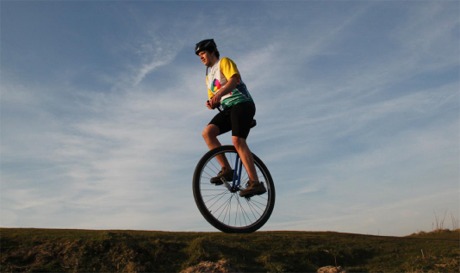 Perched precariously high up on his unicycle, Jai