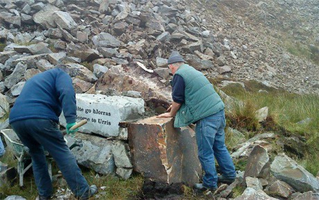 volunteer stone masons, Richie Dick, Charlie Hagan,