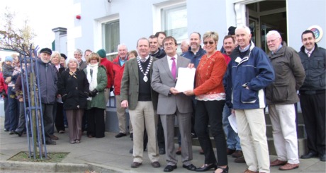 BUSINESS people in Moville handed a petition over to