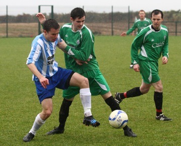 forward. A rare Oisin McColgan snapshot then tested Gweedore keeper McKelvey before Celtic's Eamonn Cannon almost put clear daylight between the sides; driving at Lynch in the Swifts goal from eight yards after Gary Whoriskey's inswinging corner. Just on the field, Quigley's Point substitute Joe Johnston made an instant impact, flicking on for Gerard McLaughlin, who could only blaze over under intense pressure from Paul McBride. McLaughlin then almost found Johnston with a superb reverse pass as the home side gained a foothold in the game again. Steven McCarron's shot was well blocked following a marauding run by Quigley's Point defender Oisin McColgan before Gweedore substitute Jamie Boyle headed Gary Whoriskey's cross narrowly wide as the visitors sought a crucial fourth goal cushion. Gweedore keeper collected Steven McCarron's cross before a quick counter attack all but sealed victory for the Donegal League men. Jamie Boyle pivoted brilliantly in midfield before picking out Colin Ferry, who rifled past Lynch with a devastating first-time shot on the run from eighteen yards. Celtic's Kevin Friel then almost got in on the scoring act but the late substitute was denied by a fantastic point blank save by Lawrence Lynch. The home keeper was called into action again, minutes later, to save at the feet of Colin Ferry, who ghosted past three defenders on a fine run. Steven McCarron's last gasp drive was well tipped over by McKelvey before referee Liam Porter sounded the final whistle. Quigley's Point Swifts: Lawrence Lynch, Simon Wallace, Trevor Gallagher, Oisin McColgan, Kevin Wallace, Martin Donaghy, Steven McCarron, Brian McColgan, Gerard McLaughlin, Oisin McCool, Adam Harkin. Subs: Dean Hegarty, Joe Johnston, Sean McIvor, Gerard Green. Gweedore Celtic: Michael McKelvey, Shane Barr, David Ward, Paul McBride, Donal McBride, Eamonn Cannon, Gary Whoriskey, Damien O'Sullivan, Ciaran McFadden, Colin Ferry, Oran McNelis. Subs: Kevin Friel, Christopher Sweeney, Jamie Boyle. Man of Match All on the mark, Gweedore trio Colin Ferry, Oran McNelis and Ciaran McFadden tormented the Quigley’s Point defence all afternoon and were a constant scoring threat. For the Swifts – Raymond Buchanan and Steven McCarron sparkled on a dull day but the award goes to Gerard McLaughlin, who had a hand in both home goals and retained possession intelligently throughout. Key Moment The game’s key moment arrived ten minutes before the break when Colin Ferry’s deflected shot brought Gweedore Celtic back into a game they looked likely to lose. Until that point the home side were cruising, two-goals up and controlling possession. After Ferry’s fortuitous goal Gweedore homed in on a fine come-from-behind victory. Ref Watch Bridgend referee Liam Porter had an excellent game in the middle. Let the action flow throughout and was right to award Quigley’s Point a first-half penalty after David Walsh’s rash foul on Raymond Buchanan. Walsh was also booked in the incident. That aside, Porter did not have to reach into his pocket again with both teams playing in a sporting manner. For full coverage of all your weekend sport, read the Inishowen Independent. |