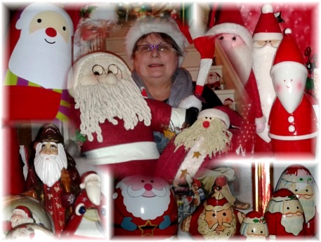 be-Claus of her huge collection of Santas.