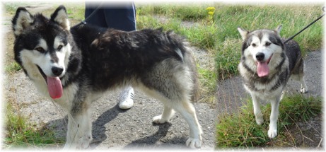 Alaskan malamute Cody, left, waits