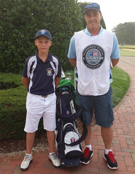 Jack Duffy with his caddie and uncle,
