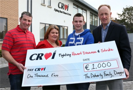 present a €1,000 cheque to Croí chief executive