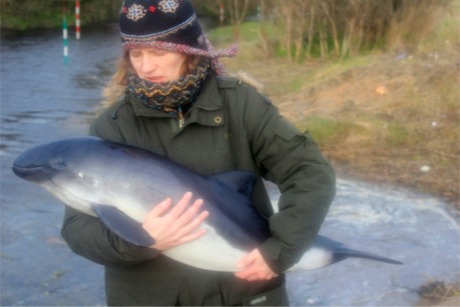 the baby porpoise to safety. Photo: Anthony Craig. |