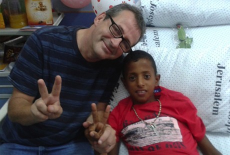 John Cutliffe helps out in Jerusalem. |