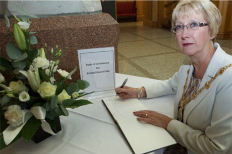 book of condolence at Derry's Guildhall. |