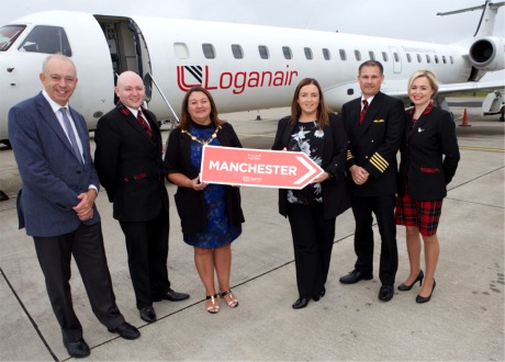 celebrating Loganair inaugural flight to Manchester.
