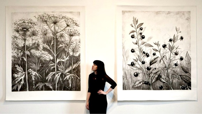 gallery space surrounded by the exquisite drawings by