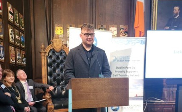 Jack Kearney from Moville Sea Scouts speaking at the Sail Training Ireland awards ceremony in the Mansion House.