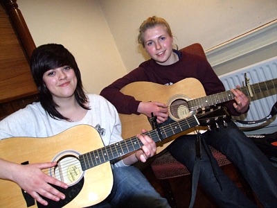 Debbie McDaid, Gulladuff, left, and Laura Bonner, Greencastle at a recent Up Scene rehearsal. Up Scene organisers, from left, Emma McDermott, Marie McDonald and Claire McDermott. Some of the local musicians who will take part in the Up Scene open mic evenings. From left, Ronan Hepburn, Moville, Matt McGilloway, Moville and Kyle Monaghan, Redcastle. Tuning up for Up Scene...Amy McColgan, Moville, left, and Sharon McGonigle, Carrowmenagh. Up Scene organisers George McCormick and Clodagh Warnock pictured at rehearsals with local singer songwriter Leo McCauley.