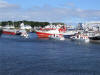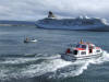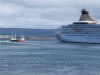 Members of the McKinney Academy of Dance treat the Artemis passengers to colour and dance. The Artemis pictured a short distance from Greencastle Harbour. Three of the Artemis tender boats shuttle the 1,500 passengers back to the ship. An Artemis tender passes a local fishing boat. The Lough Foyle Ferry dwarfed by the P&O liner, Artemis.