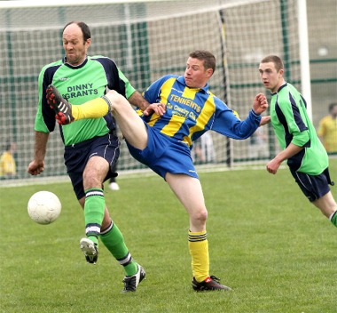 Aileach...2 Dermot McGlynn 92, 106 Illies...1 Gavin Doherty 89 by Michael Stamp, Inishowen Independent, at Maginn Park A BUSY Maginn Park was the venue for this crunch relegation play off between Aileach and Illies. The game was too close to predict with both teams recording victories over each other earlier in the season and finishing up on an identical 19 points, usually enough to stay up but not this season. Illies came into the match off an impressive run which saw them claim ten points from four games and were hoping to keep their run of form going. For Aileach their lack of goals has proved to be their downfall this season netting only 20 times in 16 league games. |
