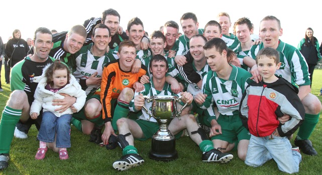 Reserves...2 (A. Doherty 27; D. McLaughlin 56) Cockhill Celtic Youths...0 by Damian Dowds, Inishowen Independent, at Maginn Park CLONMANY Reserves used all their guile and experience to see off the challenge of Cockhill Celtic Youths in the Fr O’Gara Cup final on Sunday night. Cockhill shaded the contest in terms of possession, but with captain Kevin Harkin and fellow centre half Jonathan McLaughlin comfortably dealing with everything that was thrown at them, Clonmany mostly reduced the opponents to shooting from distance and they failed to create many clear cut chances. Goals in either half from Aidan Doherty and Daniel McLaughlin had the Reserve League side 2-0 up, and goalkeeper Christy Ivers saved an 80th minute penalty to ensure that their First Division opponents never threatened that lead. Clonmany created the first chance of the game when Daniel McLaughlin whipped a dangerous cross into the 6 yard box. Dessie Doherty slid in to meet it, but put the ball over the bar. |