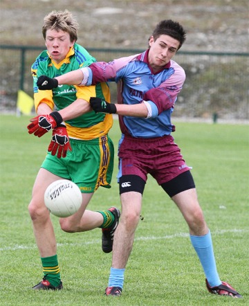Coláistí Inis Eoghain...5-12 St Michael’s Enniskillen...4-06 INISHOWEN'S combined schools team made a stunning debut in Ulster Colleges competition with a nine point victory over St Michael’s Enniskillen in Burt on Friday afternoon. Corner forward Darach O’Connor hit five goals for Coláistí Inis Eoghain and was virtually unmarkable while midfielder Conor Harkin chipped in with seven points from frees and play. The Enniskillen full forward line of Kevin Curran, Colin Logan and Daire Gallagher shared 4-5 between them, and the Fermanagh side led by 4-4 to 3-6 ten minutes into the second half, but a strong finish from the Inishowen men saw them take the win. The nine point winning margin flattered Inishowen somewhat; St Michael’s looked dangerous right up to the final whistle and only stout Inishowen defending, as well as a superb penalty save by Harry Doherty, kept them at bay. Darach O’Connor was in unstoppable form, his goals coming in the 3rd, 25th, 26th, 42nd and 53rd minutes. The diminutive corner forward has a deceptive turn of pace, the strength to retain possession under pressure and a great eye for goal. St Michael’s tried a number of different markers on O’Connor, but none had any joy in curtailing him. |