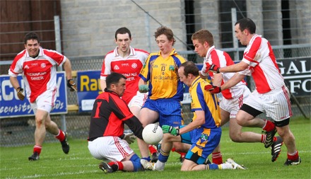 force extra time with a real high-pressure kick. Injury deprived Burt of the services of the influential Kevin McDermott, who was forced off during last week’s first game with broken ribs, while Naomh Colmcille were without Cathal Curran, who was also injured in the sides’ first jostle. Just 13 seconds had passed when O’Hagan took receipt of Ciaran Devine’s delivery to open the scoring before |