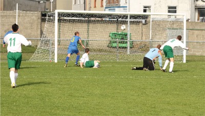 Clonmany Shamrocks...1 (P. Doherty ’53) Aileach FC...1 (D. McGlynn ’57) by Damian Dowds, Inishowen Independent, at Shamrock Park, Clonmany CLONMANY and Aileach played out an entertaining draw at a sun-kissed Shamrock Park on Sunday afternoon. While the first half was high on endeavour, it was a little short on finesse and although Aileach had the better of the chances, the sides were scoreless at half time. The second half was altogether more exciting, illuminated by two goals in five minutes. Midfielder Paddy Doherty gave the Shamrocks the lead on 53 minutes when he lofted the ball over a helpless Gerard Crossan, but Aileach hit back soon after when right back Dermot McGlynn rose to head a Mickey Feeney cross in off Peter Devlin’s right hand post. It was end-to-end stuff for the final half hour, with both sides spurning chances to grab a winner. However, the draw was probably the fairest result as neither side did enough to win it. Clonmany keeper Peter Devlin was the busier of the two keepers in the first half hour. He made a fine fingertip save in the first minute after Charlie McCormick had crossed for Anthony Doherty and the latter directed the ball goalwards. |