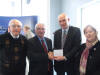 Inishowen Electoral Area chairman Cllr Bernard McGuinness presents a cheque for 10,500 euro to ICRfm's Jimmy McBride. Also pictured are Cllr Denis McGonagle and Cllr Rena Donaghy.