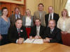 Inishowen builder Keith McGrory of Keithlin Developments hands over the keys to the new Moville Manse to Metodist President Aian Ferguson. Also pictured are Denise McCandless and Inishowen Methodist minister, Rev Eric Lawson. Local politicians and representatives of some of the churches in Inishowen pictured at the opening of the newly built Methodist Manse in Moville. Donegal Labour Party candidates and supporters sign their nomination papers. Young Liam McAllister entertains Derry Mayor Councillor Gerad Diver and Mayoress Alice Diver at the Mayor's Charity Concert in the Guildhall as part of the recent City of Derry Jazz Festival. North West European candidate Fiachra Ó Luain speaking to retired Bishop of Kerry, Dr Eamon Casey during a recent train journey on his campaign trail. Team captain Andy Devlin is joined by fellow team-mates and coaches Willie O’Donnell and Luke McCloskey after the North West College’s U18 soccer team beat St. Patrick’s Academy, Dungannon, in the Carnegie Cup final. Some of the holes recently spotted in the walls of the historic Grianan an Aileach ringfort by Bettina Linke from Buncrana. Mary Kelly from Pedal Right with the children of Scoil Mhuire, Gleneely after she gave a talk on the importance of safe cycling and bike care. Donegal returning officer Brian Boyle receives the nomination papers of Sinn Féin candidates, Cllr. Cora Harvey, Stranorlar; Cllr. Marie-Therese Gallagher, Glenties; Mick Quinn, Letterkenny and Milford; Jim McLaughlin, Donegal; Sean Ruddy, Inishowen; Cllr. Pádraig MacLochlainn, Inishowen and John Ó Féarraigh, Glenties. Great Northern Hotel manager Karen Mc Eniff presents a cheque for €500 to Denise Diver, office administrator for the Donegal Down Syndrome Association. Also included in the picture is Karen's brother Raymond Daly, association chairperson and his son Ethan. The money was the proceeds of a recent wedding fair.