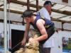 Smiles in the sun at Burt from Gavin McLaughlin, 8 months, from Priestown, Carn. Some of the Inishowen Fianna Fáil team flank Tanaiste Mary Coughlan on her weekend visit to the Sheep Shearing festival in Burt. Graeme Davidson competes in the junior category of sheep shearing championships in sweltering Burt heat. Shane McDonagh relieves this sheep of her heavy wool coat during the sheep shearing competitions. This sheep gets it in the neck from expert sheep shearer Eugene Cloonan. The McFeeley family from the Isle of Doagh including Martin and Fiona and children Shane, 3, and Lauryn, 2. Greg and Claire McDaid from Buncrana are joined in Burt by their children Darrien, 3, and Oran, 1. Also pictured is their little pal, Ava McLaughlin, 3. Enjoying the sheep shearing festival in a scorching Burt on Bank Holiday Sunday were Shaun Bradley, Carn, and Kathleen Gallan, Killygordan. Peter and Patricia McLaughlin, Carndonagh, with son Jamie, 2. Moville ace mechanic, Noel Doherty, demonstrates his tractor building skills at the Burt show.