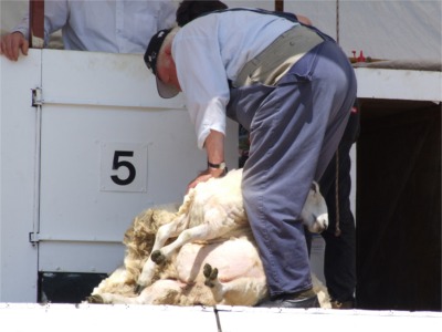 This shearer does a sheep a favour in heat that climbed to around 25 degrees Celsius at times in Burt.