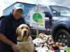Oisin Robinson, 2, from Kilmacrennan has a go on the big lawnmower watched over by mum Una. Little Regan Joy, 2, and mum Deirdre Kelly, Terryrone, Moville, have a look at the little kid goats. Judging continues in the cattle showing. Charmaine Kee from Crossroads, Killygordan, showing two-year old draught mare Manor's Overdraught for Jim Steele of Manorcunningham. Fahan's Lawrence McDermott and his lovely five-year old guide dog, Isaac, host the Irish Guide Dogs for the Blind stand at the Carn Show Day. A wide range of memorabilia was on sale for the charity including cuddly toy dogs, key rings and back-to-school items such as rulers. Irish Guide Dogs for the Blind PRO for Donegal, Marie McGettigan, Donegal Town and volunteer John Rose, Inver, arrive at the Carn Show to give Lawrence McDermott and Isaac a hand. Also pictured are Hudson, Sage and Coco Chanel, who turn out to do their bit on fundraising days.