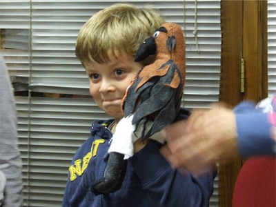 This young man meets a friend of Eco Crow, created by Mary Lorraine McHugh.