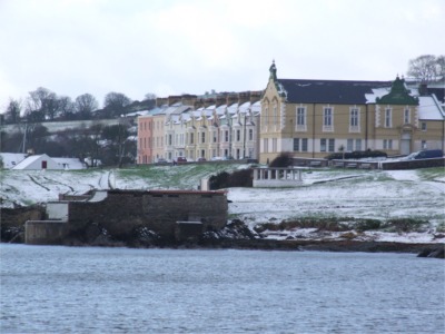 A view of Montgomery Terrace, Moville, in the snow. The Fid sees its first winter snow. Frosty enjoys his day in the sun. Moville Pier under a blanket of snow. The wintry scene at Moville's Bath Green. A picturesque Lafferty's Lane, Moville. A favourite Moville landmark, Carnagarve House, looks majestic in the snow. A wintry view of The Fid emigration monument at Moville Pier.