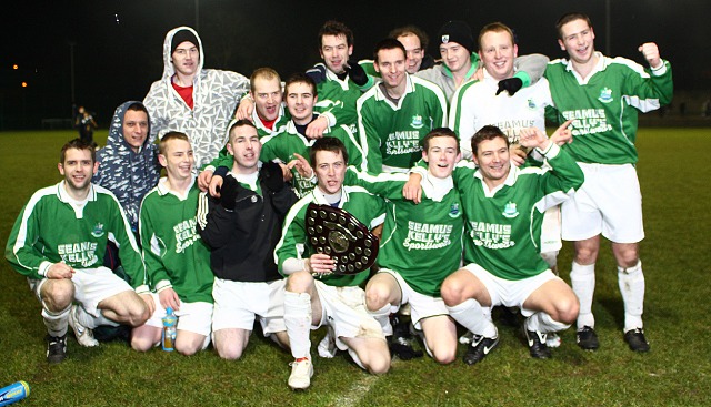 Reserves...3 (J. Holmes ’20; K. McDermott ’42 (penalty); C. Lafferty ’45) Glengad United Reserves...2 (D. Doherty ’53 & ’77 both penalties) by Damian Dowds, Inishowen Independent, at Maginn Park MOVILLE Celtic Reserves won their third successive Reserve League Shield at a wintry Maginn Park on Saturday night, but they were pushed to the pins of the collars by a gutsy Glengad side. With five goals, two red cards, a flurry of yellows, three penalties and a couple more that weren’t given, the final didn’t lack incident or excitement. Moville took a 3-0 lead into the dressing room at the break and Glengad were somewhat fortunate that they weren’t trailing by more. Moville had looked a class above their opponents in the first period and the half time consensus among the large crowd was that Glengad would do well to keep the score respectable. But Glengad had different ideas. They tightened up their defence and closed down their opponents and created the better chances in the second period. Two penalties brought them back into contention and as the clock ticked down they were pressing for the equaliser that would send the tie to extra time. But the goal wouldn’t come and Moville held on for what was, on balance, a deserved win. Moville threatened to steamroll their opponents in the early stages as they cut through them at will creating several good chances, the first of which fell to Christy McGeoghegan in the first minute. The Glengad defence failed to deal with a dangerous Kevin McDermott cross from the right wing and McGeoghegan timed his run to perfection to pull the ball past Martin Kelly in the Glengad nets but it ricocheted off the right hand post and was scrambled clear. |