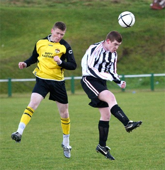 Carrowmena...2 (J McLaughlin 17, 49) Glengad United...2 (Pat McDermott 48, Kelly 54) By Simon McGeady, Inishowen Independent, at The Warren IF GLENGAD United are to realise their season’s primary ambition of a return to the Premier Division, for the first time on half a decade, they will need to play better than this down the stretch to May. Team manager Liam McClean knew as much when, addressing his youthful team after the final whistle, he told them it was ‘a miracle’ United had got anything from the game. Perhaps that was putting it a little too harshly, but certainly there was little inspiration, divine on earthly, on show from the Crua kids at the Warren on Sunday. Credit too must go to Carrowmena. Twice now in the league this season they have pushed last Sunday’s opposition to the limit, losing 1-0 in the first fixture. Glengad might have taken a 6th minute lead, but Paul McDermott’s in-swinging corner was headed over by John Gerard McLaughlin. |