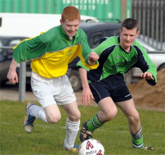 Illies Celtic 6 (Paul Doherty (2); Aiden Doherty; Paddy Doherty and Cathal Doherty (2)) Cockhill Celtic 0 by Gerard McLaughin, Inishowen Independent, at the Illies THIS was a game dominated by Dohertys. Illies’ first four goals were scored by the three Doherty brothers - Paul who scored twice, Aiden and Paddy and substitute Cathal Doherty added a further two. Right from the start the home team dominated possession and in truth they could of won by more but for some careless finishing. The front two for the home side gave the Cockhill defence a hard time all day long, the craft and experience of Paul Doherty was well complemented by the pace and trickery of Ciaran McDaid who gave the two visiting centre halves a hell of a lot to do. Illies took the lead in the first five minutes with their first attempt at goal. After a scramble in the box the away defence failed to clear their lines and Aiden Doherty pounced to head home from ten yards. This was just what Brendan McDaid would have wanted as it settled his team down and from then on they dominated possession of the ball and always looked in control of the game. |