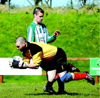 Harkin. But it was all Clonmany and Emlyn Doherty who ran the game for large parts from the heart of the midfield, sent Aidan Doherty through again in the 41st minute with a clever through ball but his shot was straight at Gilloway. And it didn’t seem as if things were going to chance much in the second half when Rocky Ivers split the Clonmany defence to send Kevin McCarron away but he fired his shot just wide of the target. Dunree hit back with a similar effort wide of the target from substitute Bernard Doherty before they levelled the game with a wonder strike. Henry Connell rode three hefty challenges in the heart of the midfield before letting fly with a shot that flew over the helpless Harkin to level the game. It was however to be the best Dunree could muster and for large parts of the rest of the game they were battered back into their own half and sometimes into their own eighteen yard box. In one five minute spell the visitors forced Gilloway into three saves in a row in a goalmouth scramble and they also saw the ball come off the post as the Dunree defence continued to lead a charmed life. But their luck wasn’t going to hold til the end and goalscorer Aidan Doherty turned provider in the 76th minute when he set off on a good run down the right before squaring to Kevin McCarron to blaze in from eight yards. There never seemed any danger of Dunree stealing a late equaliser but Clonmany were taking no chances and when a Dunree attack was snuffed out in the last minute a quick break saw substitute Micky Kelly released through the middle and he made no mistake with a shot past Gilloway that sealed a well deserved three points. Dunree: Roger Gilloway, Kevin Colgan, Johnny Toland, Frank Kelly, David Cassidy, Stephen O’Sullivan, Malcom McGee, Henry Connell, Neil Moran, Sean Baldrick, Paddy McLaughlin. Subs: Bernard Doherty for Paddy McLaughlin (54 mins); Paddy Toland for Kevin Colgan (65 mins). Clonmany Shamrocks: Paddy Harkin, Darren Grant, Jerry McDaid, Sean Doherty, Declan Doherty, Emlyn Doherty, Rocky Ivers, Christy Ivers, Ciaran McLaughlin, Kevin McCarron, Aidan Doherty. Subs: Dessie Doherty for C Ivers (61 mins); Liam Barclay for Ciaran McLaughlin (75 mins); Micky Kelly for Aidan Doherty (83 mins). For full coverage of all your weekend sport, read the Inishowen Independent. |