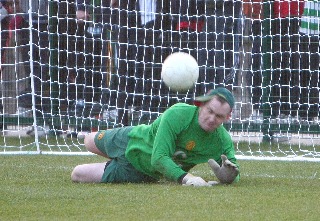 Clonmany Shamrocks...0 Redcastle United...0 (AET Clonmany won 3-0 on penalties) by Liam Porter, Inishowen Independent, at Maginn Park BRUCE GROBBELAAR-style antics from Clonmany goalkeeper Peter Devlin saw him win the mind games over Redcastle on Sunday night to make three dramatic penalty shoot-out saves and seal the West End League Cup title for his side. Devlin sustained an injury in extra time but recovered sufficiently to make a brilliant last gasp stop from Redcastle’s Brian Tracey with just seconds left on the clock and force the game to the shoot-out. And then the Clonmany keeper came into his own. He got a strong right hand to Eamon Donnelly’s strike to give his team the advantage after captain Raymond McDaid had tucked away his shot, and that was just the start. |