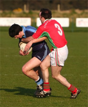 Carndonagh...2-09 (Burke (1/4), Newton (1-1), Nelson (0-3), Matthews (0-1) Robert Emmets...0-5 (Lafferty (0-4), McConnell (0-1) Report: Inishowen Independent IN A feisty encounter Carndonagh had enough to put away Robert Emmets of Castlefin in Foden on Saturday. The home team have got off to a pretty good start this season winning two of their first three matches, their only blemish being an away defeat to the recently relegated Fanad Gaels. On the other hand Emmets have had a poor start to their year with only one point to show so far for their efforts. The Castlefin side came to Inishowen with confidence but a moronic sending off before a score was even recorded and a tremendous display by Darren Burke ensured a home victory was on the cards. The home team were boosted by the fact that their reserves had won by a five point margin and started the game positively in an attacking mindset. Emmets were also attacking and unenforced errors from both sides were prevalent in the opening exchanges. |