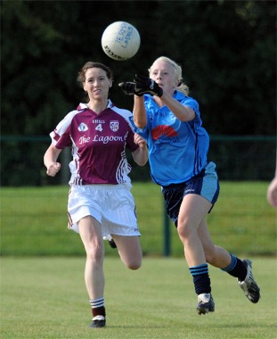 half time to make a contest of this final. After an uncharacteristic wide from Geraldine McLaughlin, Maureen O’Donnell registered Termon’s first score in the 27th minute with a beautifully angled strike. Niamh McLaughlin, who had also lined out for the Republic of Ireland U17s over the weekend against Italy in Dublin, then added another point for Moville three minutes into stoppage time at the end of the half before they grabbed their first goal from the resulting from the kick-out. Treasa Doherty was quickest onto the loose ball and wasted no time in dispatching it confidently to the back of the net to leave a ten point (1-8 to 0-1) gap between the sides at the break. Termon already had a mountain to climb if they were to get back into the game and their task was made even greater when Moville grabbed a second goal just a minute after the restart through Niamh McLaughlin. Termon scored two successive points with Geraldine |