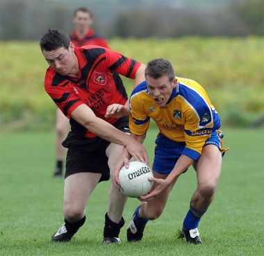 left to make it 1-4 to 0-4. Then, from a similar location, and after more fine play from Harkin, Friel got the result he had intended with his shot moments earlier; a point. Urris were enjoying their best period of play and when Eddie Kelly scored another free to make it 1-6 to 0-4 after good work by right corner-forward Mark McLaughlin, it looked as though the Straid side would take a nice cushion into the second half. That was before, deep into stoppage time, Burt hit the key score of the match. Enda McDermott spotted Campbell in space on the right and picked out the diminutive forward who rounded Adrian Doherty, drew keeper Johnny Noone to the near post before hand-passing across the small square for Enda to lash home. Burt started the second half with real purpose. Eamon Reddin burst out of defence and after three yellow shirts touched the ball, Joe Boyle applied a simple finish to a first-rate move. By the 46th minute the sides were all knotted up at a goal and eight. A pair of Joe Boyle frees sandwiched an opportunist’s strike from Niall McCarroll after Liam Diver failed to field a high ball into the square. Diver, unusually, was a peripheral figure and his height was a non-factor with Burt bypassing the midfield sector whenever they could. In the 47th minute Burt hit the front for the first time in 24 minutes when Paddy McDermott fired over in a flash amidst a sea of red shirts 40 metres from goal. Enda McDermott and Joe Boyle points had Burt up by three with ten minutes to go before Urris checked their advance with scores from Phil Pat Doherty, joining the attack at just the right moment, and another Eddie Kelly free. Burt were not to be denied, however, and took the match by the scruff of the neck in the closing minutes. McCarroll struck his second point of the game before Harrigan came up from the back and rushed onto a languid pass from the unflappable Paddy McDermott, then sprinted forward 20 metres and put his boot through the ball to make it 1-13 to 1-10. Urris were powerless to change the flow of the match now and with time running out they resulted to high balls into the square seeking the height of Brian Kelly, but the Burt line was not breached, Paddy McDermott blocking the only real chance which fell to the impressive Damien Harkin. Burt’s energy levels were greater throughout and in the final few minutes Kevin McDermott and Joe Boyle scored to cap a deserved and potentially vital win for the peninsula’s dual club. Burt: Ronan McLaughlin; Mark McGavigan, Eamon Reddin, Johnny Downey; Benny Harrigan, Ciaran Dowds, Martin Donaghey; Dermot Callaghan, Kevin McDermott; Enda McDermott, Joe Boyle, Paddy McDermott; Paul McHugh, Niall McCarroll, Jude Campbell. Urris: Johnny Noone; Sean Doherty, Patrick Doherty, Adrian Doherty; Martin Kelly, Phil Pat Doherty, Damien Harkin; Liam Diver, Edward Kelly; Dara Doherty, Brian Doherty, Shaun Toland, Shaun McDaid, Brian Kelly Mark McLaughlin. For full coverage of all your weekend sport, read the Inishowen Independent. |