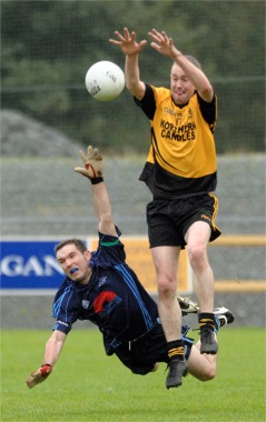 Dolan on 20 minutes. Points from Danny Murphy and an Oran Doherty free stretched the Moville lead but before Glenn could make for the sanctuary of the O’Donnell Park dressing room, Moville scored another goal in first half injury time. The composed Michael Browne intercepted a wayward ball into the Moville square and from there Moville broke at pace. Danny Murphy burst up the left with the ball, riding a couple of weak challenges, before passing across the square to John McGeady who’d lost his marker. The Moville centre half forward found the gap at the near post to give Glenn a ten-point mountain to climb in the second half. The Down men laboured on but with Moville continuing to pressure the ball carrier, they couldn’t make inroads on the scoreline. When Oran McDermott raced through to rifle home soccer-style in the 41st minute, after Doherty and John McGeady combined to release him, the game was up for Glenn. Moville’s lead with 20 minute to go was a mammoth 4-4 to 0-5. Moville did kick a number of bad wides in the second half, not that it mattered since their forwards were having their way with the Glenn backs. In the 44th minute creator turned scorer when Doherty spun in behind his marker on the right and, after a couple of failed attempts to chip the ball into his hands, he said to hell with it and passed the ball beyond Dolan with the flick of his left foot. Moville will face Fermanagh representatives Belnaleck in a quarter-final tie at Brewster Park in two weeks and with the Monaghan, Derry, Tyrone and Armagh champs in the other side of the draw there is every reason to believe that the Carrick Field boys will be playing well into November. To cap a fine weekend Downing’s draw with Naomh Ultan means Moville will be playing in Division Three next season. Moville: Michael Noone; Eunan Hegarty, Enda Faulkner, Conor O’Donnell; Paul White, Michael Browne, Seamus Hegarty; Sean O’Hare, Malachy McDermott; Nigel McMonagle, John McGeady, Oran McDermott; Danny Murphy, John Faulkner, Graeme Doherty. Subs: PJ Barr for Murphy (50), Joe McBride for J Faulkner (54). Glenn: Michael Doran; Ruarai McGuigan, Stephen Clarke Damien McParland; Aaron Kennedy, Declan Murtagh, Tony Murtagh; Colm Murtagh, Steven Fearon; Damien O’Hara, Raymond Quinn, Jason Lennon; Mark Lennon, David Bagnall, Matthew Bagnall. Subs: John Mackin for T Murtagh (HT), Niall McParland for O’Hare (HT), Denis Murtagh for M Lennon (40), Christopher Sands for D Bagnall (43), Darren Bagnall for J Lennon 54. Key Score Moville’s second goal in the 20th minute put real daylight between the sides and set the tone for the rest of the match. Moville’s measured build up was in danger of petering out before Graeme Doherty sent the ball into the square where Oran McDermott had stolen a march on his marker. Turning Point Since Moville were never behind, arguably this game didn’t have a turning point, but after Glenn hit back-to-back scores to pull within two points in the middle of the first half Moville upped the intensity of their play, won the kick out and captain Sean O’Hare put a three point cushion between the sides with a fine point. Key Player Graeme Doherty (Moville) After an injury hit couple of seasons Doherty is approaching his best once again. With nominal full-forward John Faulkner playing in a deeper role, the Moville corner forward shouldered the responsibility for spearheading the attack. Doherty caught the eye with excellent movement and perceptive passing. He won a penalty for the first goal, played the killer pass for the second, was instrumental in Moville’s fourth and scored the fifth himself. Man in the Middle Monaghan’s Gerry McCarron had a fine match. He let the play flow but intervened quickly and decisively on the few occasions where trouble threatened to rear its head. Moved the ball forward after blowing on several occasions when the offending player was slow to give up the ball. Bravely resisted the temptation to show red to Ruarai McGuigan after his cynical foul on Graeme Doherty or throw the Down side a life-line when Moville keeper Noone upended Raymond Quinn in the second half. For full coverage of all your weekend sport, read the Inishowen Independent. |