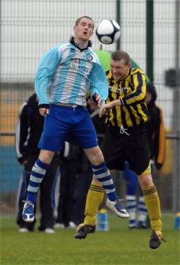 corner to give his side the lead. McDermott gave the Point defence a torrid time throughout and Glengad might well have put the game beyond doubt if they’d managed to get him the ball a little more in the second half. But for the most part Quigley’s Point had the ball and Paul Hegarty and the impressive Paul Grant prompted attack after attack through Raymond Buchanan, Fergal Buchanan, Sean Harkin and Adam Harkin. Raymond Buchan’s clever back heel created a good opening for Grant in the 9th minute, but Martin Kelly in the Glengad goal was down smartly to grab his stinging left-foot drive. Sean Harkin then cut through the Glengad defence in the 19th minute finding Fergal Buchanan, but he saw his shot again saved by Kelly and Raymond Buchanan following up on the rebound saw his effort hacked off the line. Fergal Buchanan’s low cross in the 24th minute squirmed under Kelly and almost over the line before it too was hacked clear, but despite their dominance, Point fell further behind a minute later. Goalscorer McDermott turned provider this time with a well-delivered corner that Michael Doherty powered home with a well-placed header. |