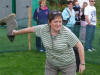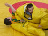 Moville parish priest, Fr Paddy O'Kane delights the crowd in the nappy-hanging competition. Brothers Ciaran, 11, and Lorcan Hughes, 8, get in a tangle in the Sumo Wrestling game. Brid Canning tries her hand at the welly-throwing. Barry and Cathy Doherty, Greencastle, oversee the 'Rescue the Sailor' competition. John Coyle, left, and Joe Bredin, Moville, take a break from the Moville Sports Day activities. Caoimhe McGuinness, Newpark, Moville, has a great laugh in the pillow fight. A soaked Orla Conlon, Moville, in the stocks for the sponge-throwing competition. The McCafferty family all the way from Belfast meet up with friends, the Gillens from Moville. Clodagh Molloy, Douglas, Cork, tries her hand at the hoop throwing. From left, Joleen McDermott, daughter Kelene and Angelina Doherty enjoy the annual sports day.
