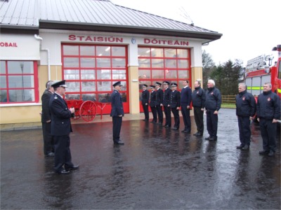 Firemen perform a guard of honour at the official opening of Moville Fire Station.