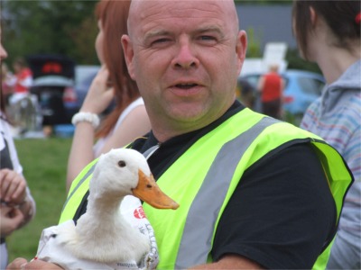 Marty McGonagle, Quigley's Point, looks after the 'Duck Drop' game at the local annual sports day.