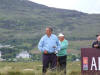 Some of the large crowds who gathered around the 18th green to watch Des Smyth finish as joint leader on Saturday during the Seniors Open in Ballyliffin. Des Smyth and his caddy approach the 18th green at the Old Links, Ballyliffin. Pat McLaughlin and Leo McCauley, members of Greencastle Golf Club, enjoy Saturday's action. Sam Torrance watches his drive on the last hole during Saturday's play in the Seniors Tour. Cecil Doherty caddying for Constantino Rocca during the Irish Seniors Open. John and Anne McDermott, who both play Greencastle, enjoy the Seniors in action at Ballyliffin. Good, Charles and Rocca prepare to tee off. Des Smyth drops a shot at the 17th. John and Paula McGilloway capture some of the action during the Irish Seniors Open. Tomari hits his third shot onto the 18th green.