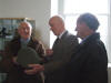 The men behind The Rockhill Collection now showing at Fort Dunree. Jim Gallagher, left, and Jackie Keenan. From left, military memorabilia collectors Jackie Keenan, Jim Gallagher, Fort Dunree director, Cllr. Dermot McLaughlin, Brigadier General Padraic O'Callaghan, Colonel Declan O'Carroll, Fort Dunree chairman, John McCarter and Fort Dunree manager David Magee. Irish Defence Forces Brigadier General Padraic O'Callaghan cuts the ribbon on The Rockhill Collection, put together over many years by retired Sgt. Jackie Keenan and Private Jim Gallagher. Also pictured is Fort Dunree chairman, John McCarter. Pictured at the launch of The Rockhill Collection at Fort Dunree are from left Quarter Master Benny Barber, and Mary and Dessie McCallion. Fearghal O'Boyle of the Inishowen Friends of Messine. Pictured from left at the recent launch at Fort Dunree are Joe Gatins of the National Parks and Wildlife service and former FCA member; Donegal Historical Society president, Ellen Meehan, Fort Dunree director, Cllr. Dermot McLaughlin and Donegal Historical Society secretary, Una McGarrigle. Inishowen Tourism development manager, Tony McLaughlin chats with Fort Dunree staff member Fergal Barber at the official launch of The Rockhill Collection. Fort Dunree staff members Bernie Long, on left, and Bridget Gorry, help with the refreshments. Former Irish Army tailor, Denis Horgan (88) from Buncrana with a hat he made - now part of The Rockhill Collection - with retired Private Jim Gallagher and on right, Jimmy O'Brien (88) from Binion, Clonmany. Messrs. Horgan and O'Brien were among the first soldiers to take over Leenan Fort from the British. Fort Dunree manager David Magee chats with retired soldier and Army tailor, Denis Horgan (88) from Buncrana.