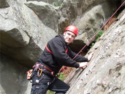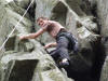 Nick Mallon from Dublin on rocks in Culdaff as part of ClimbFest 2008.